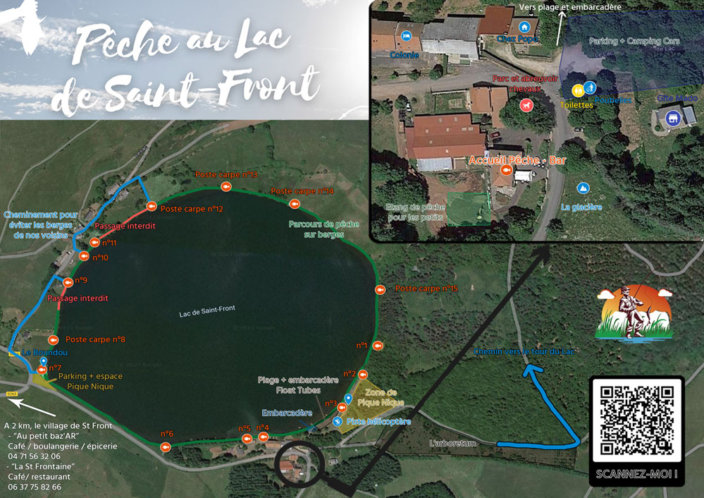 Venez pêcher des sandres, des truites, des black bass, différentes espèces de carpes (carpe cuir, carpe amour,…) de nuit comme de jour, tanches, rotengles… La pêche au Lac de Saint-Front, c’est une expérience unique, dans un cadre idéal. Les embarcations sont autorisés sur le lac !